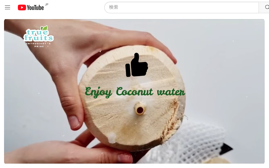 先程のラベルに付いていた「QRコード」を読み取ると、英語サイトですが下の方にYoutubeの動画があり、見てみたら日本語の字幕がついた「ヤングココナッツの詳しい飲み方」動画でした。